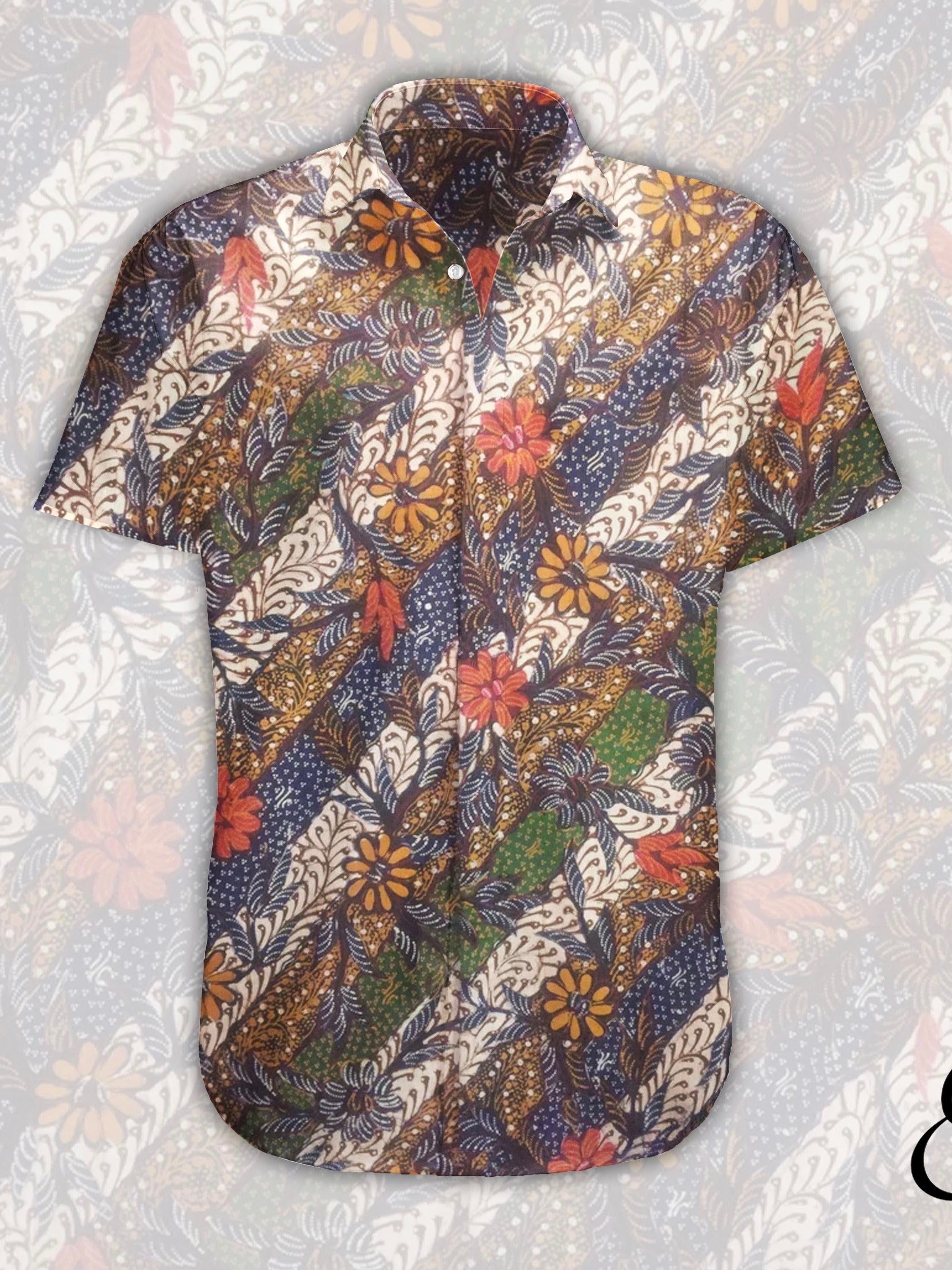 Kain batik tulis Madura dengan motif leres cengkeh, warna asli kain coklat, hijau, putih tulang, kuning, merah, hitam, pola jarit