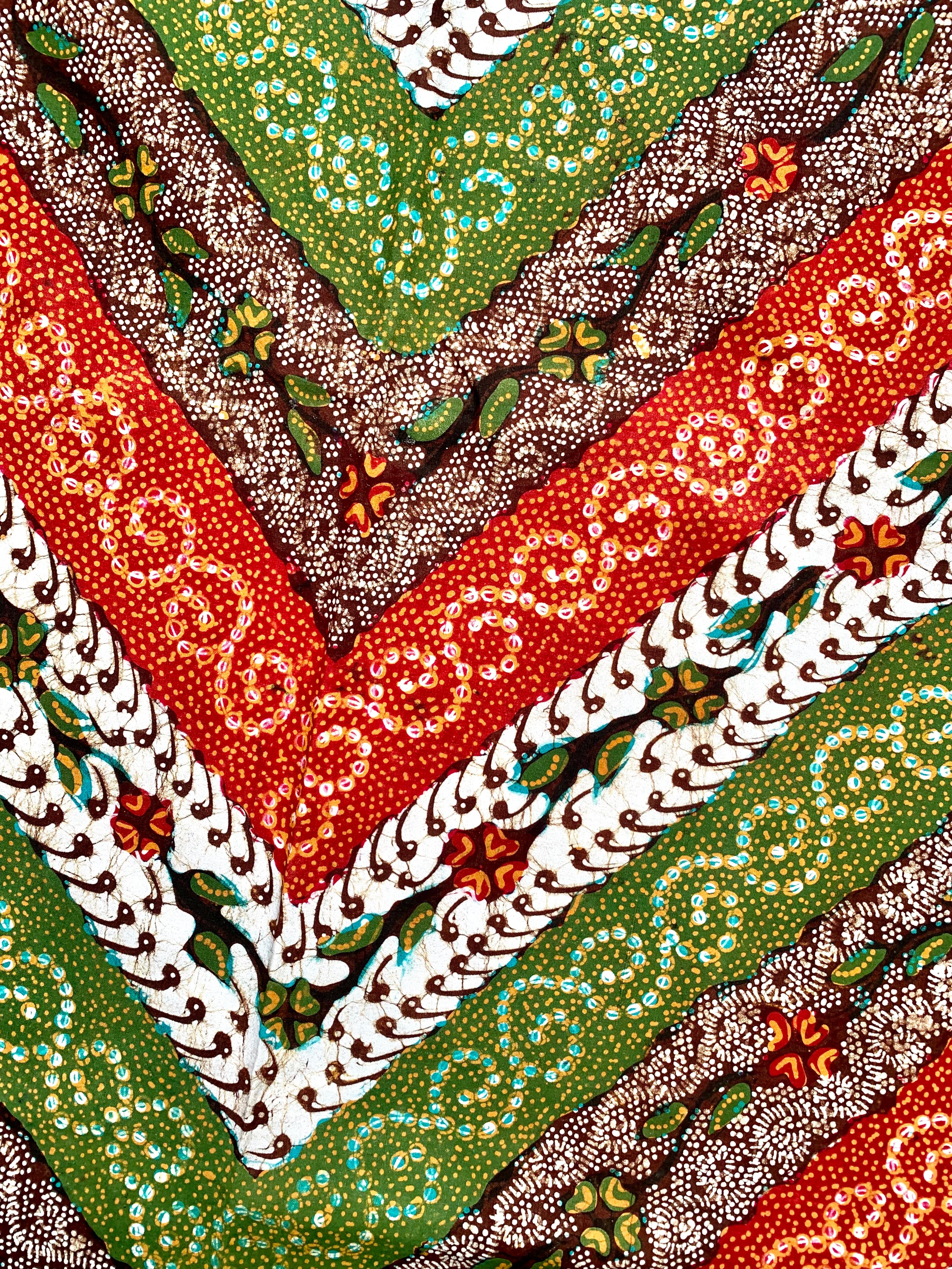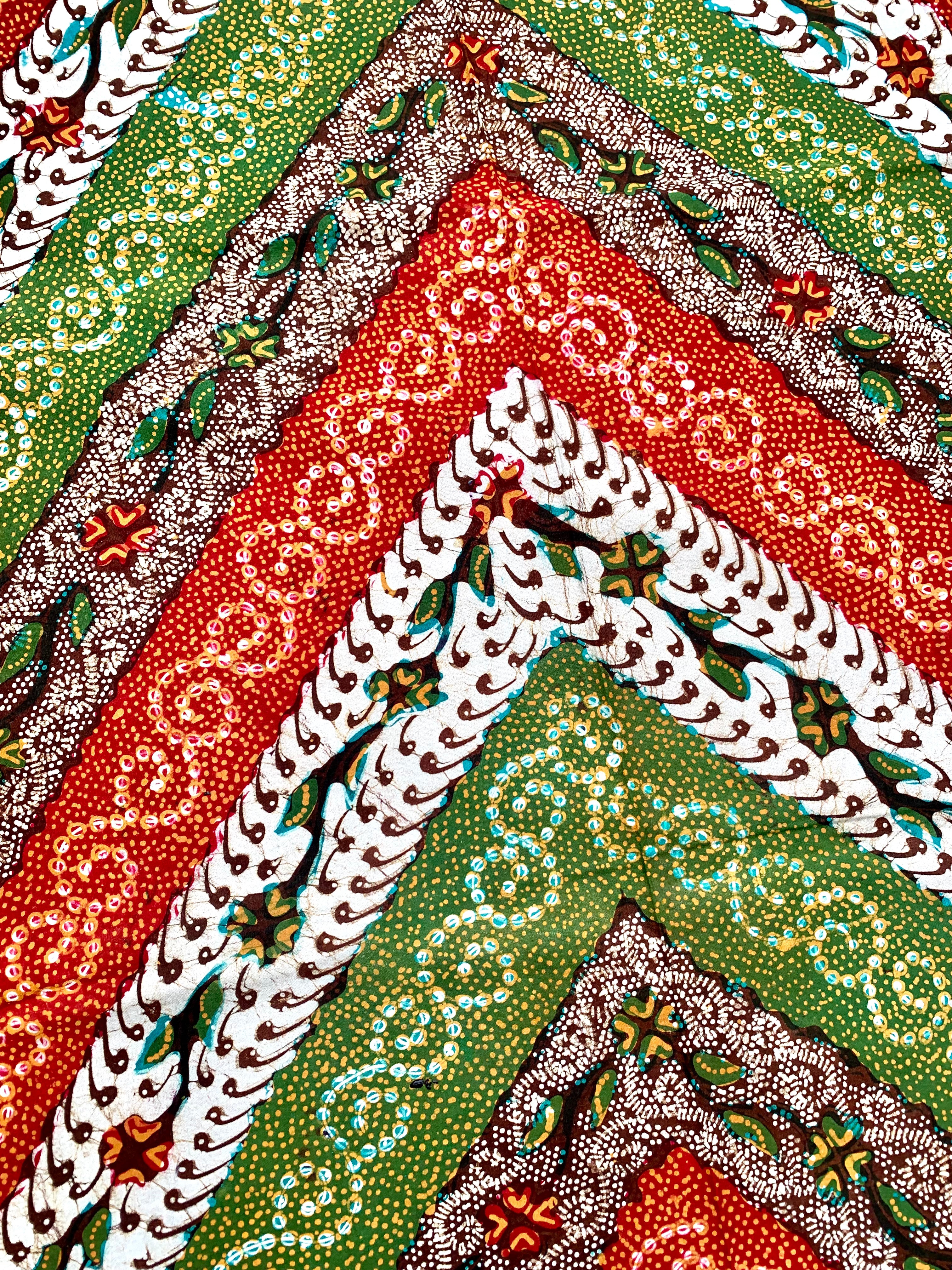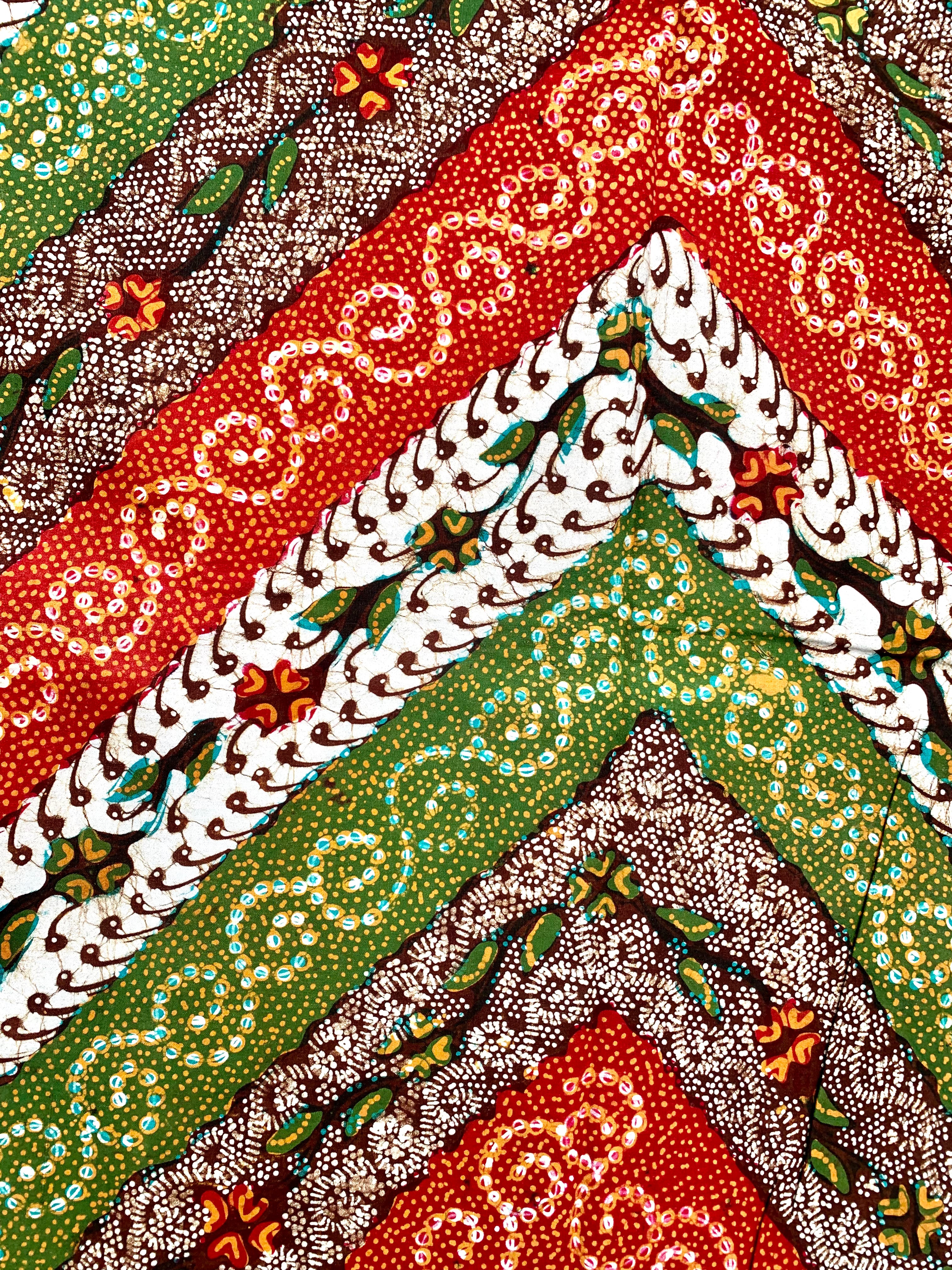 Kain batik tulis Pamekasan dengan motif lereng parang, warna asli kain merah, hijau, coklat, hitam, putih, pola jarit