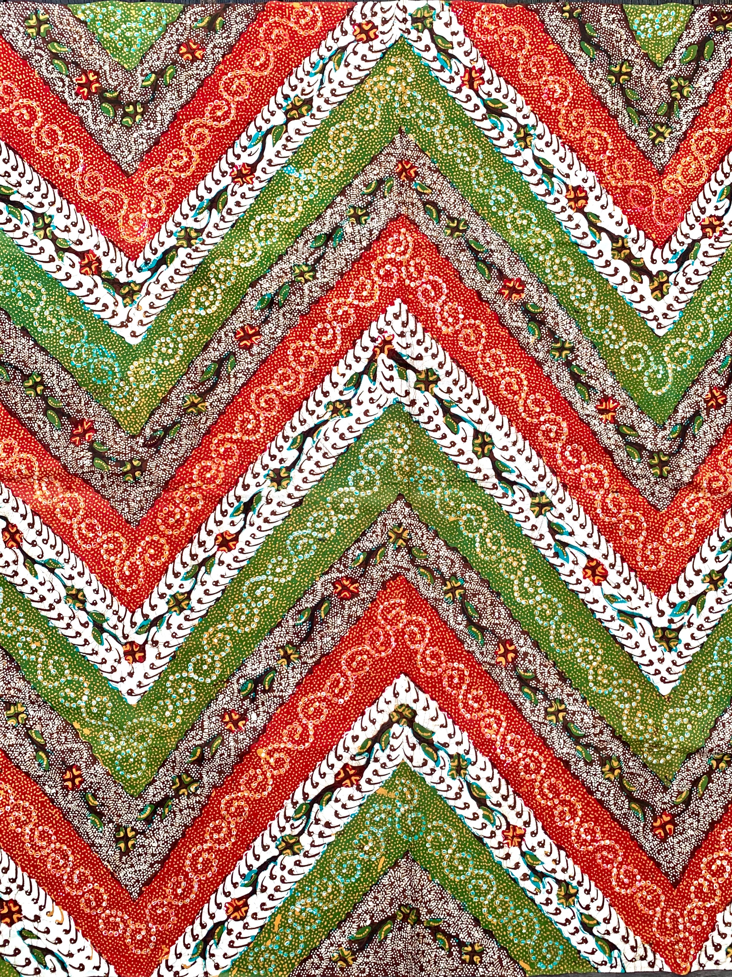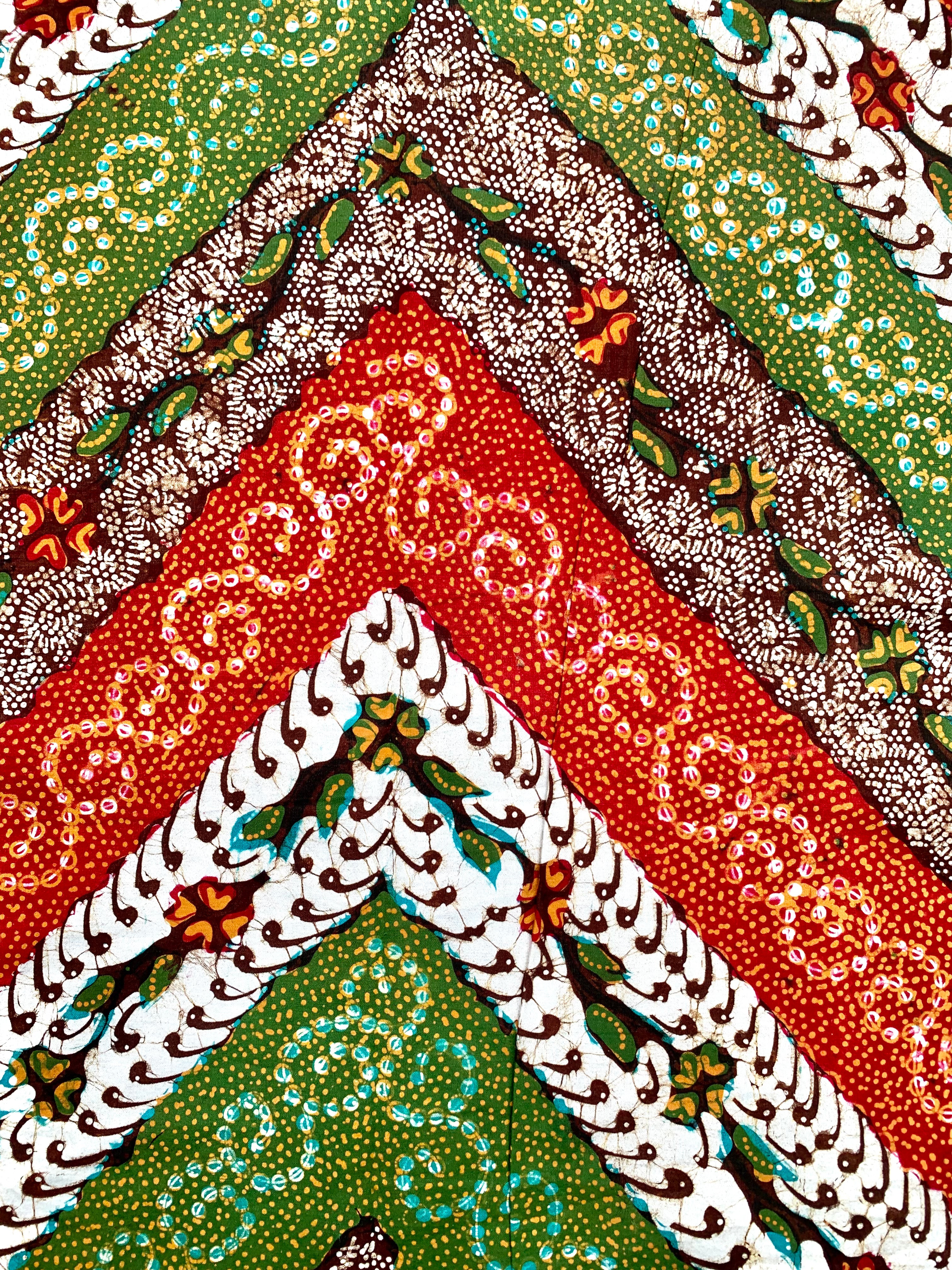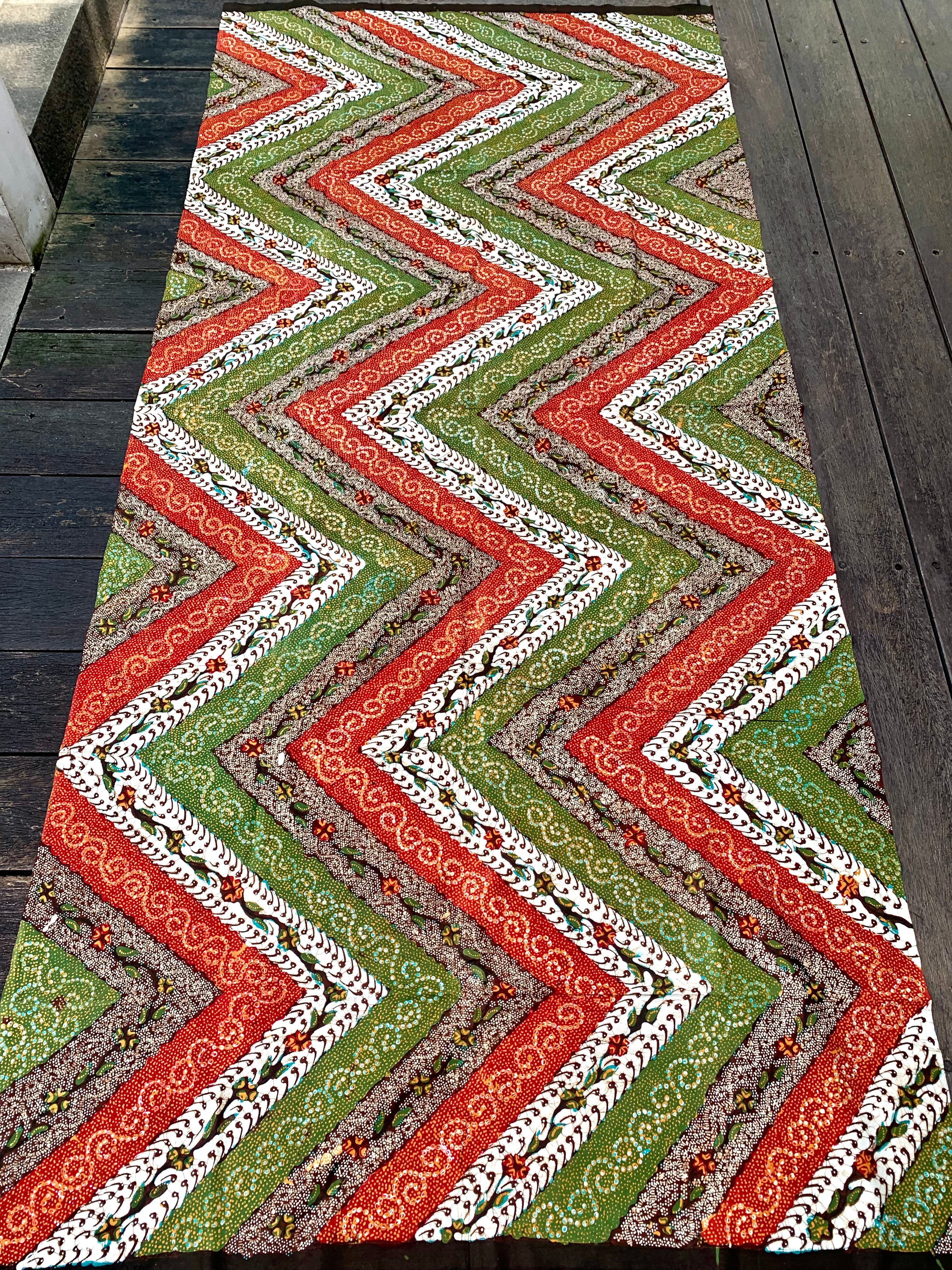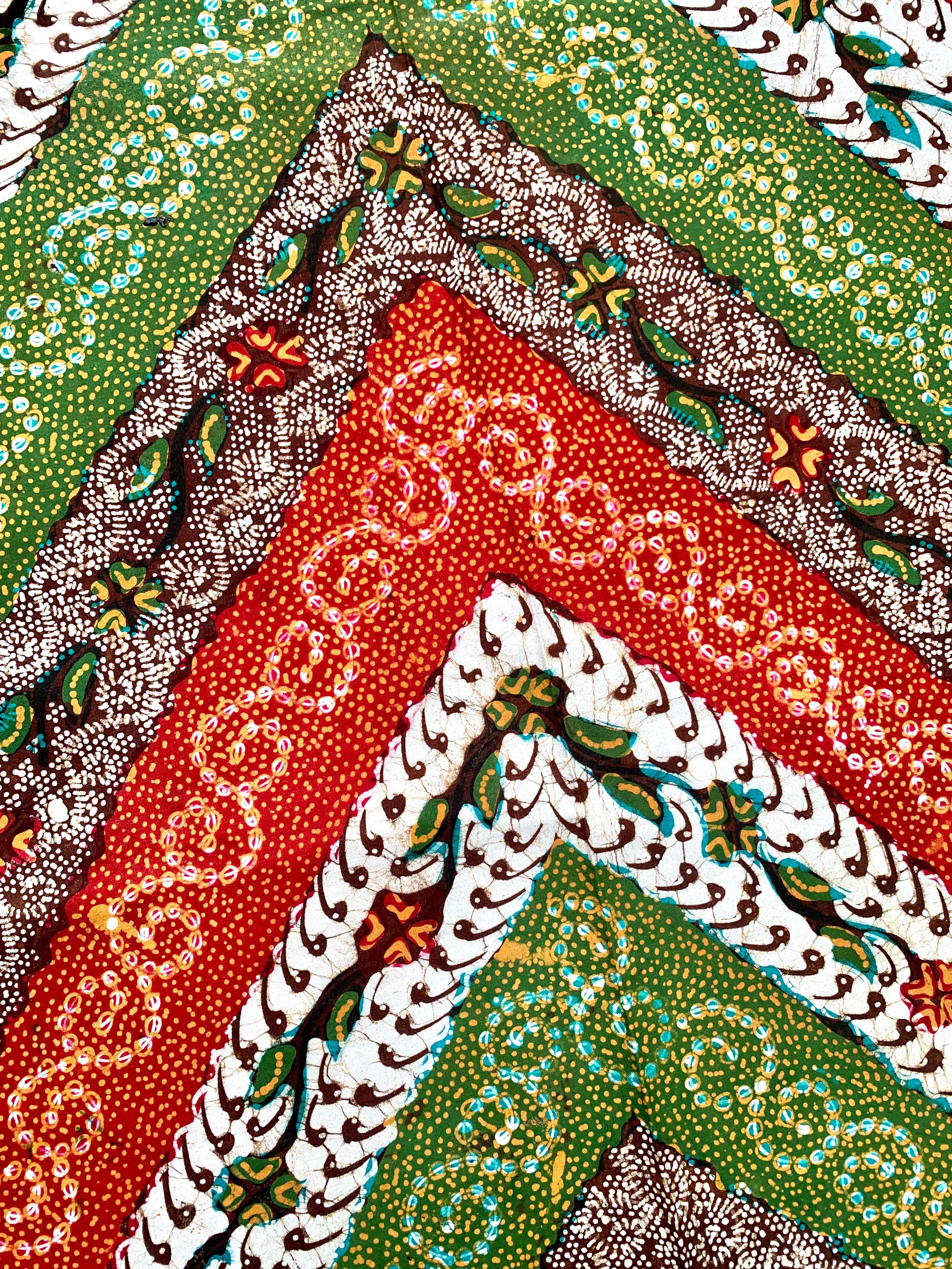 Kain batik tulis Pamekasan dengan motif lereng parang, warna asli kain merah, hijau, coklat, hitam, putih, pola jarit