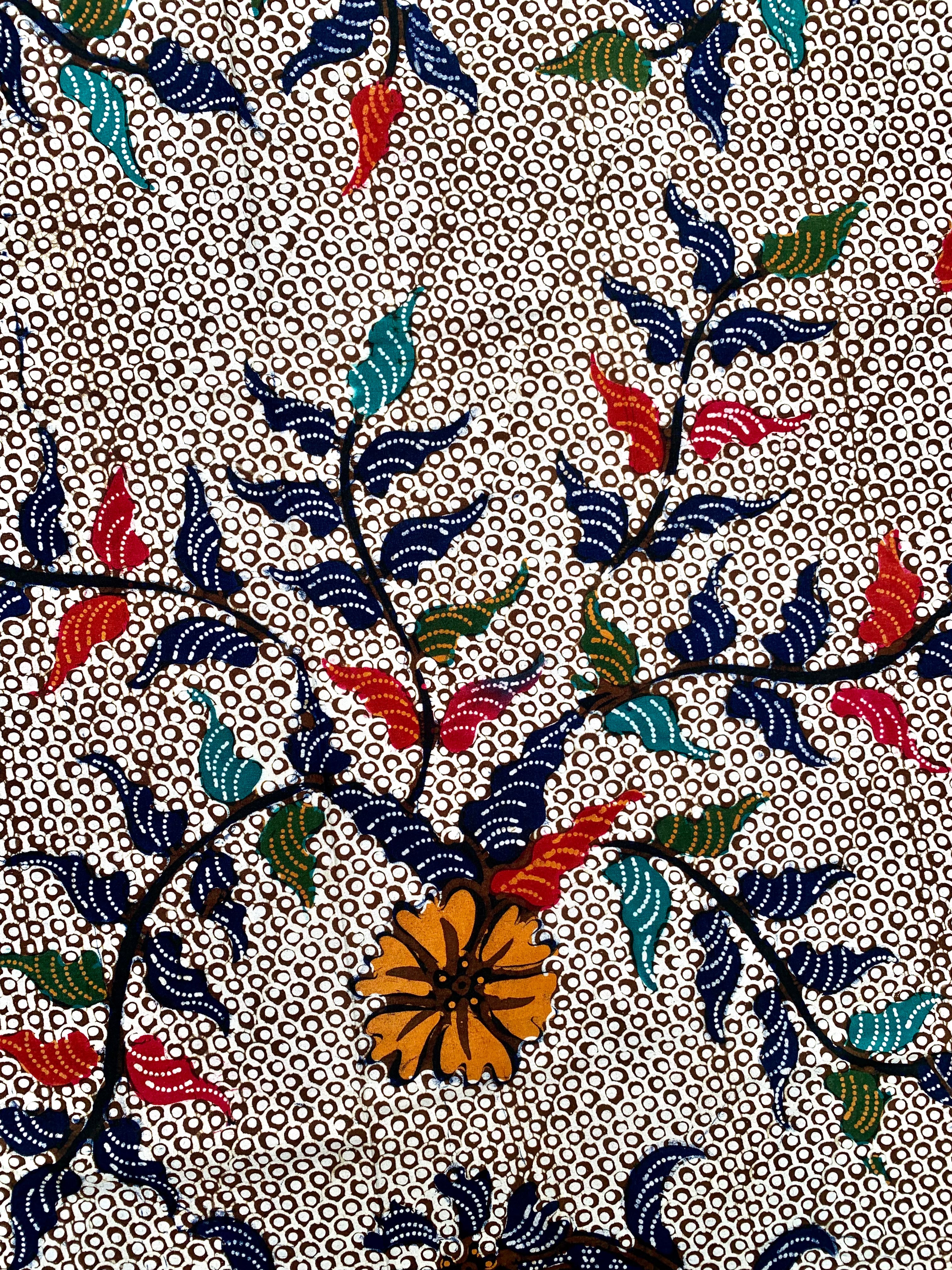 Kain batik tulis Pamekasan dengan motif parang kembang, warna asli kain coklat, hitam, putih, pola jarit