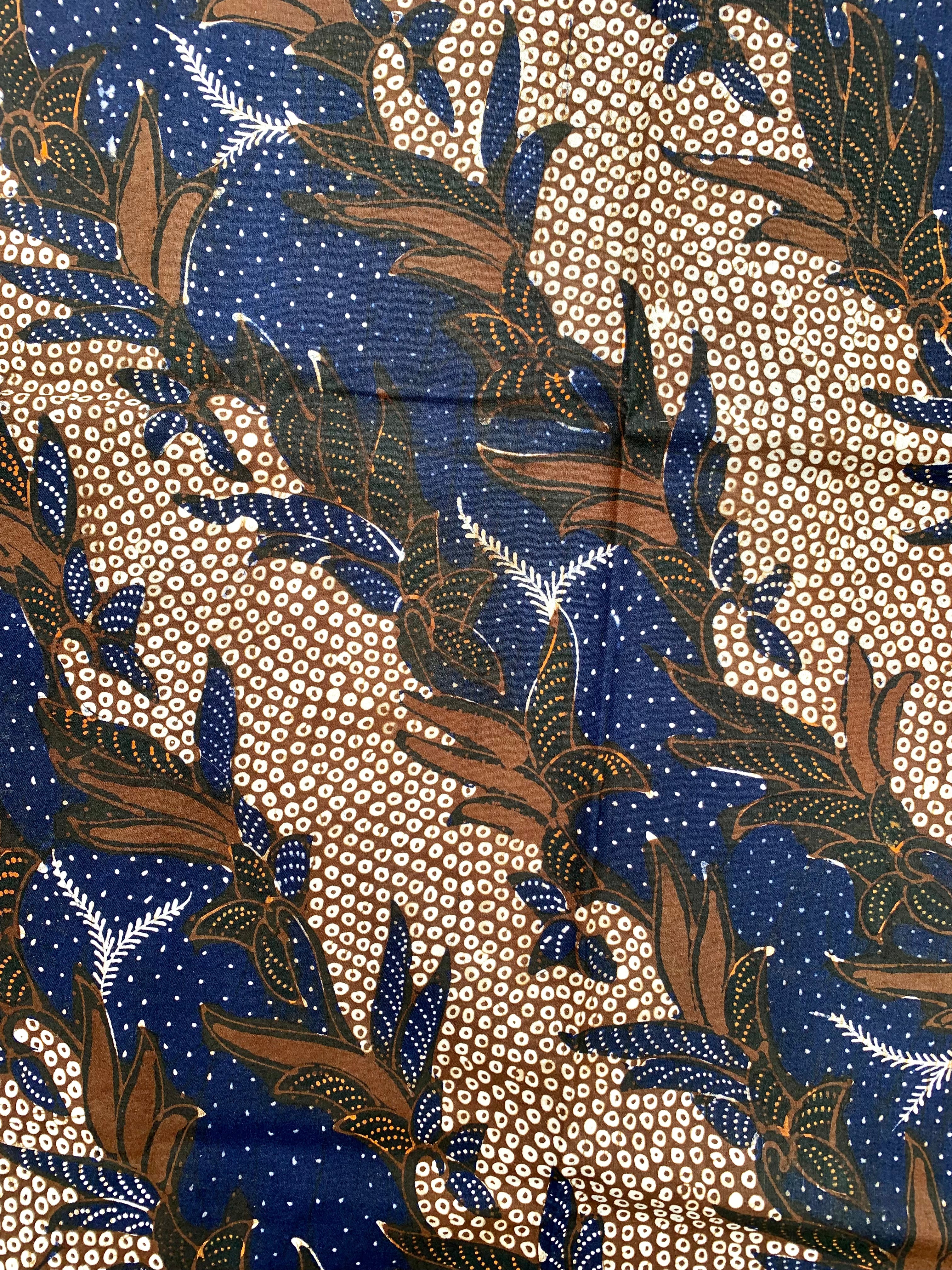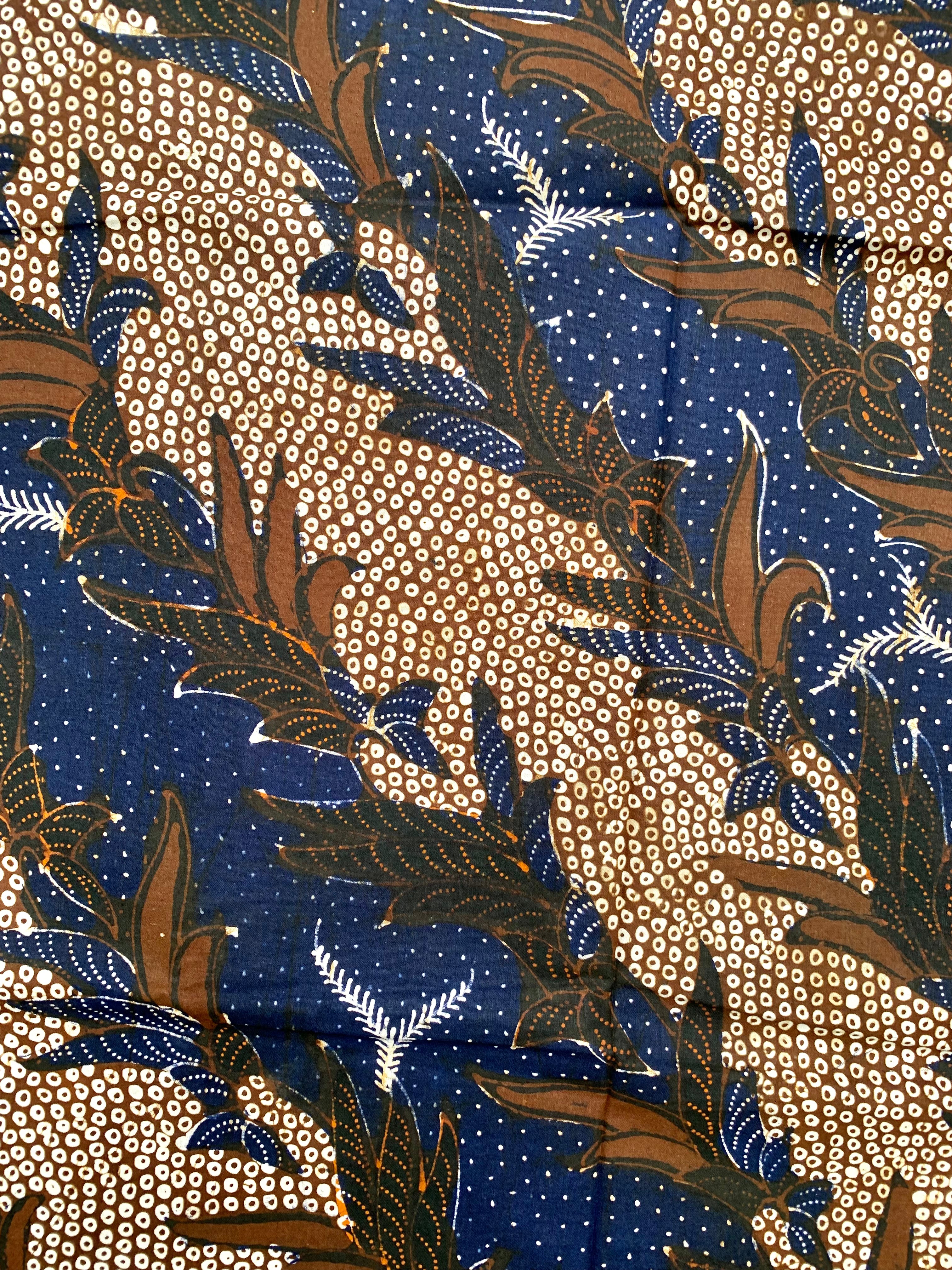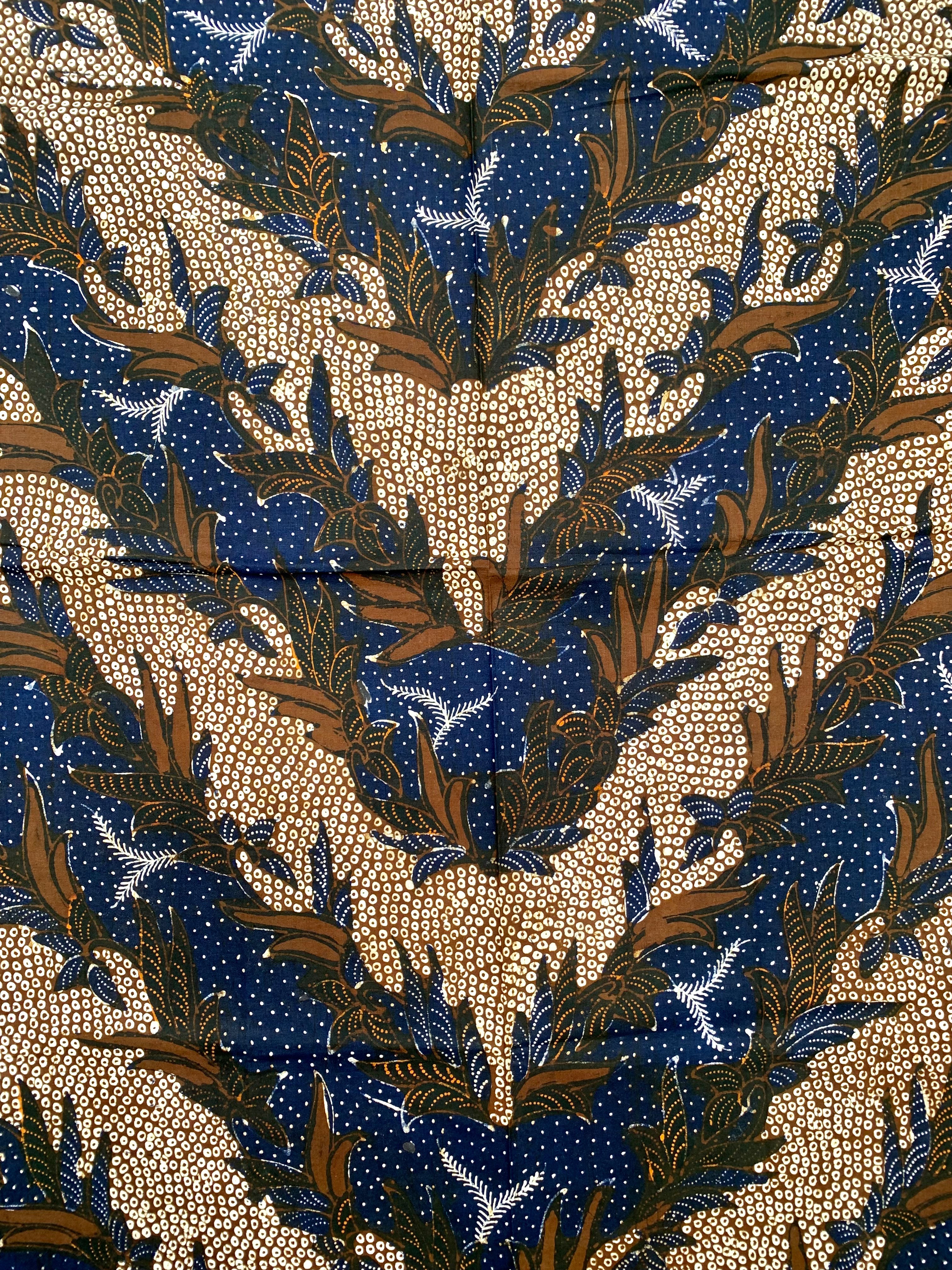 Kain batik tulis Pamekasan dengan motif lereng daun mata ayam, warna asli kain coklat, hitam, putih, pola jarit