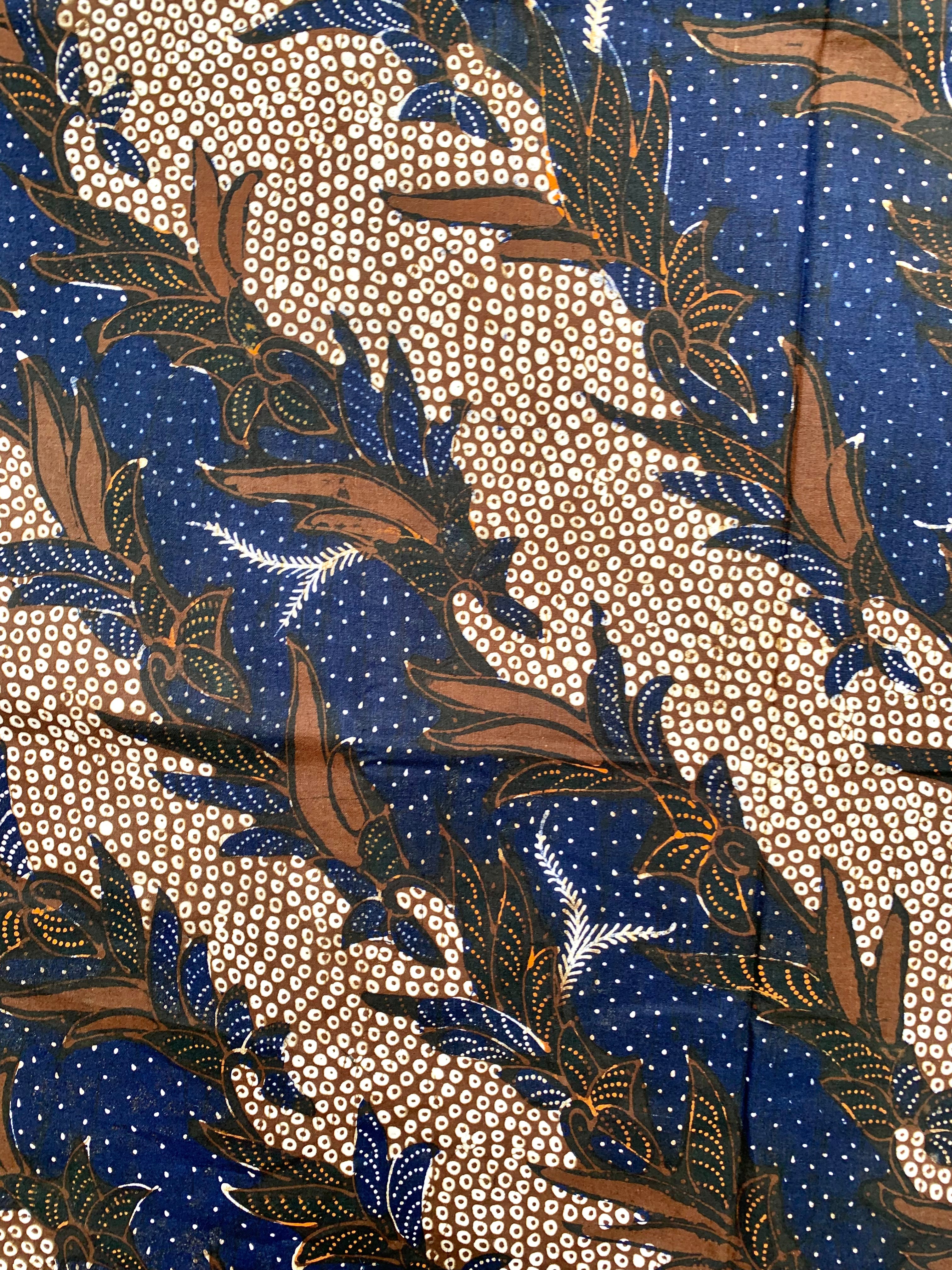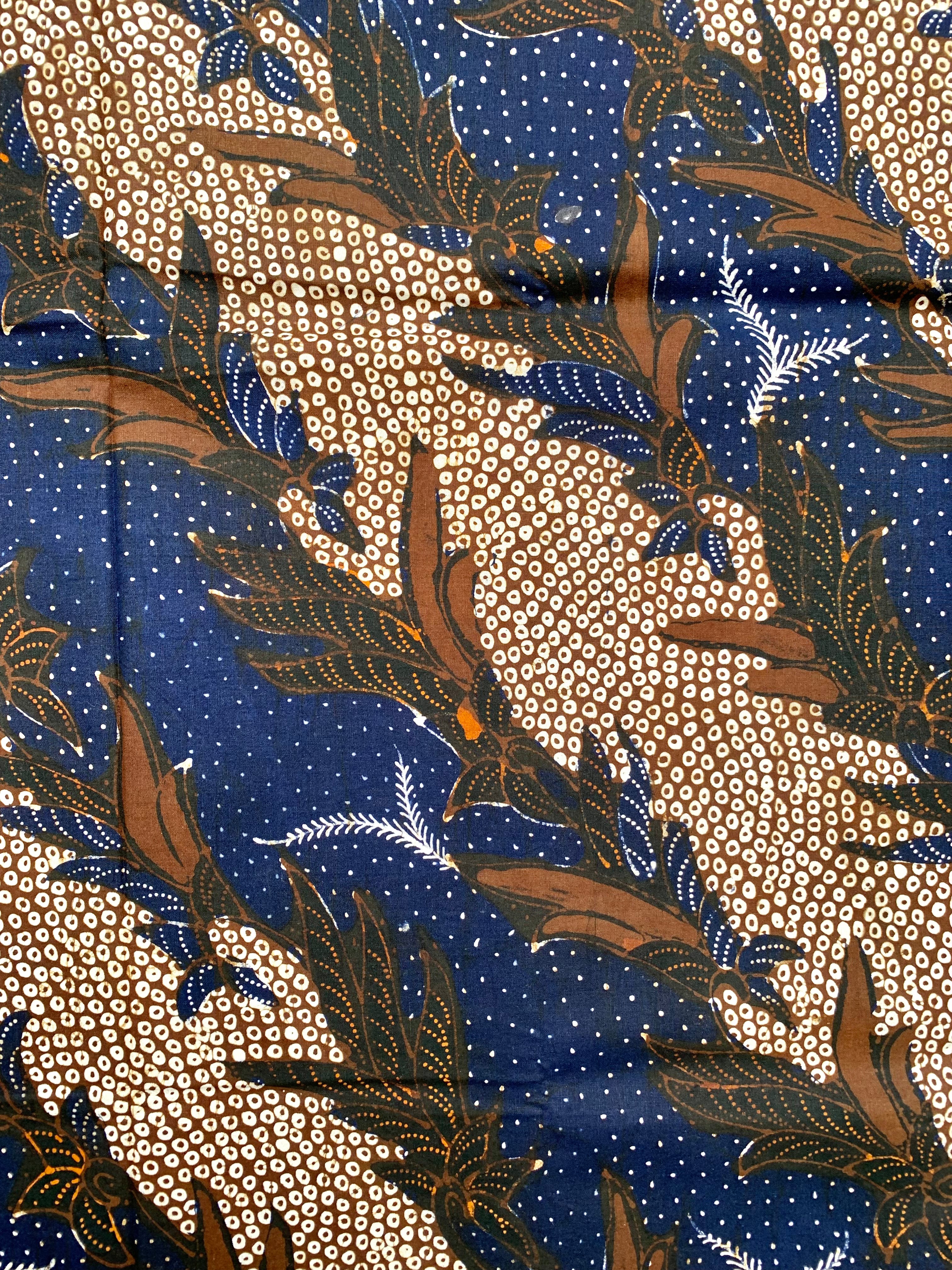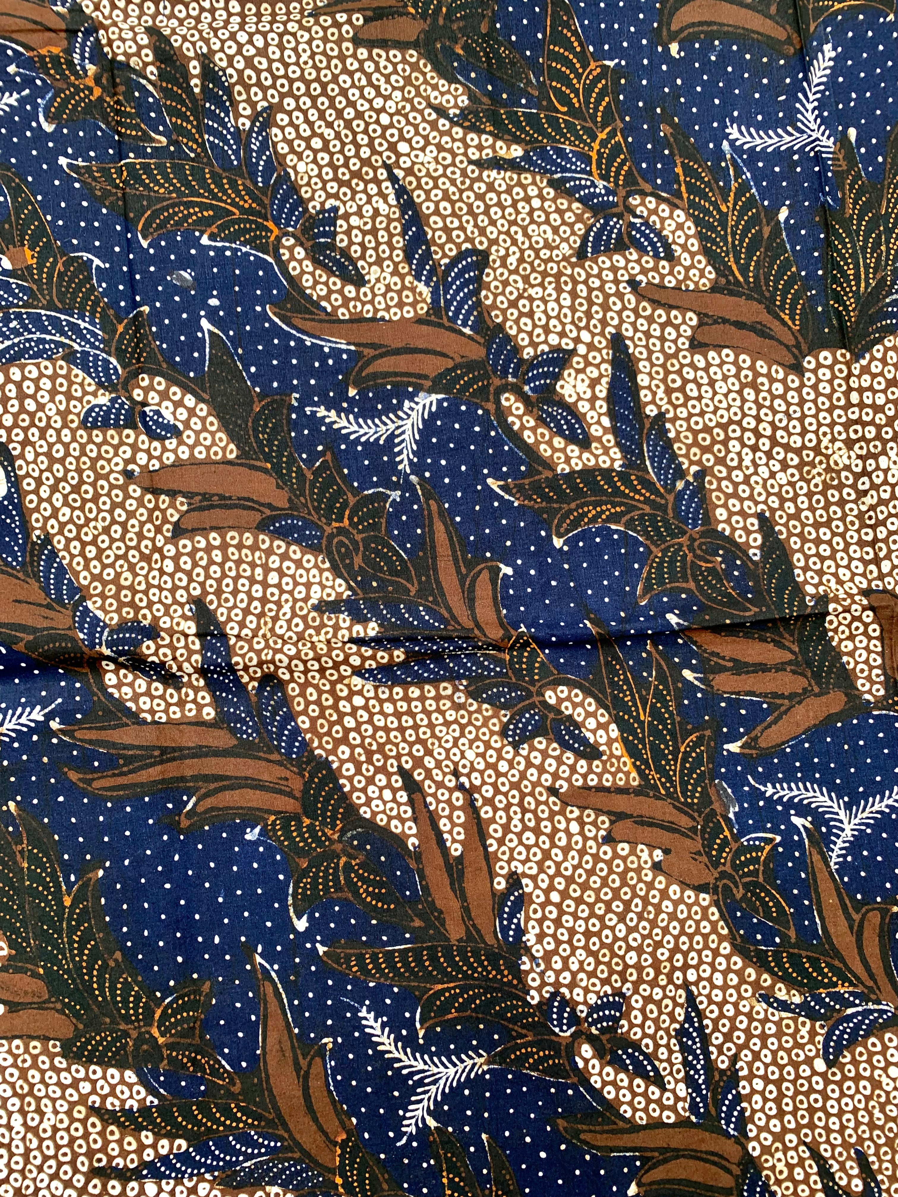 Kain batik tulis Pamekasan dengan motif lereng daun mata ayam, warna asli kain coklat, hitam, putih, pola jarit