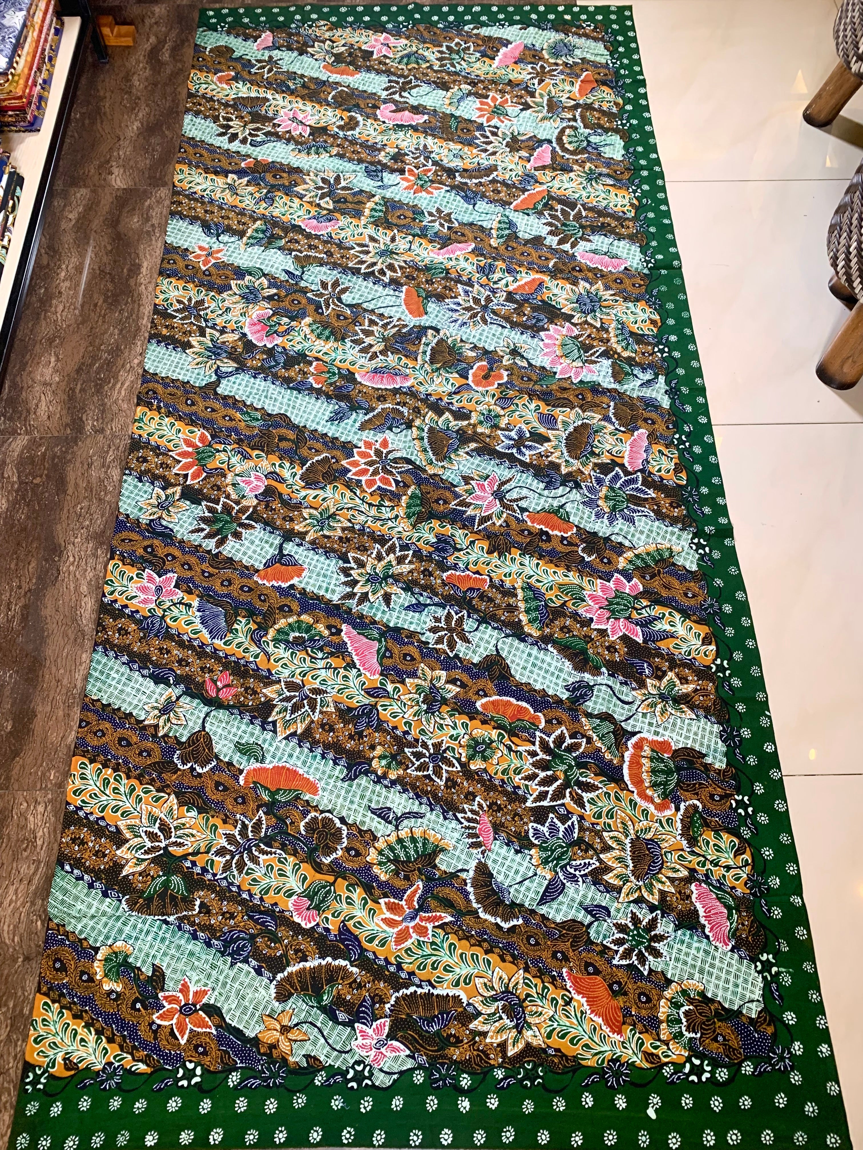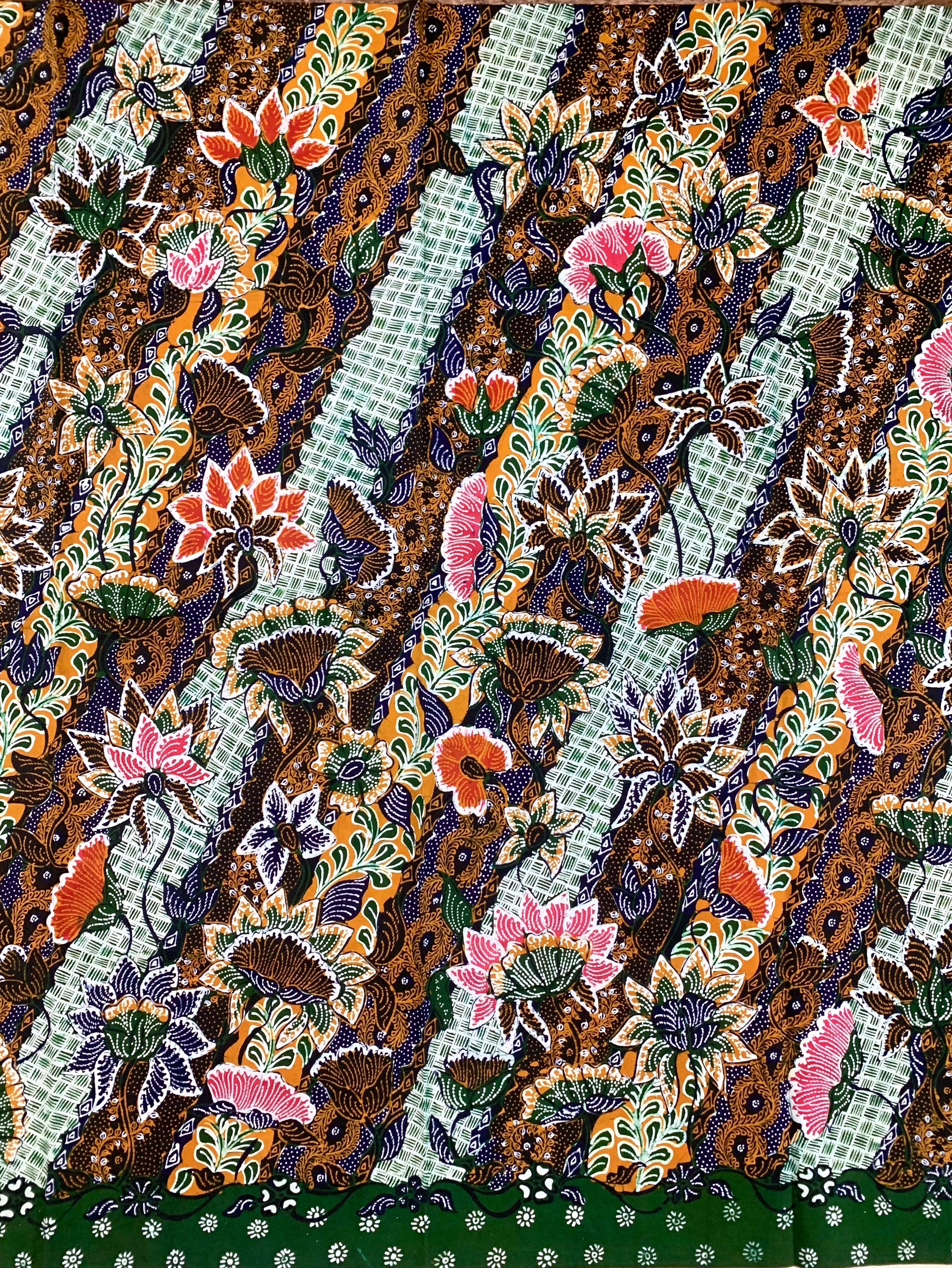 Kain batik tulis Pamekasan dengan motif lereng kembang, warna asli kain merah, hijau, coklat, hitam, putih, pola jarit