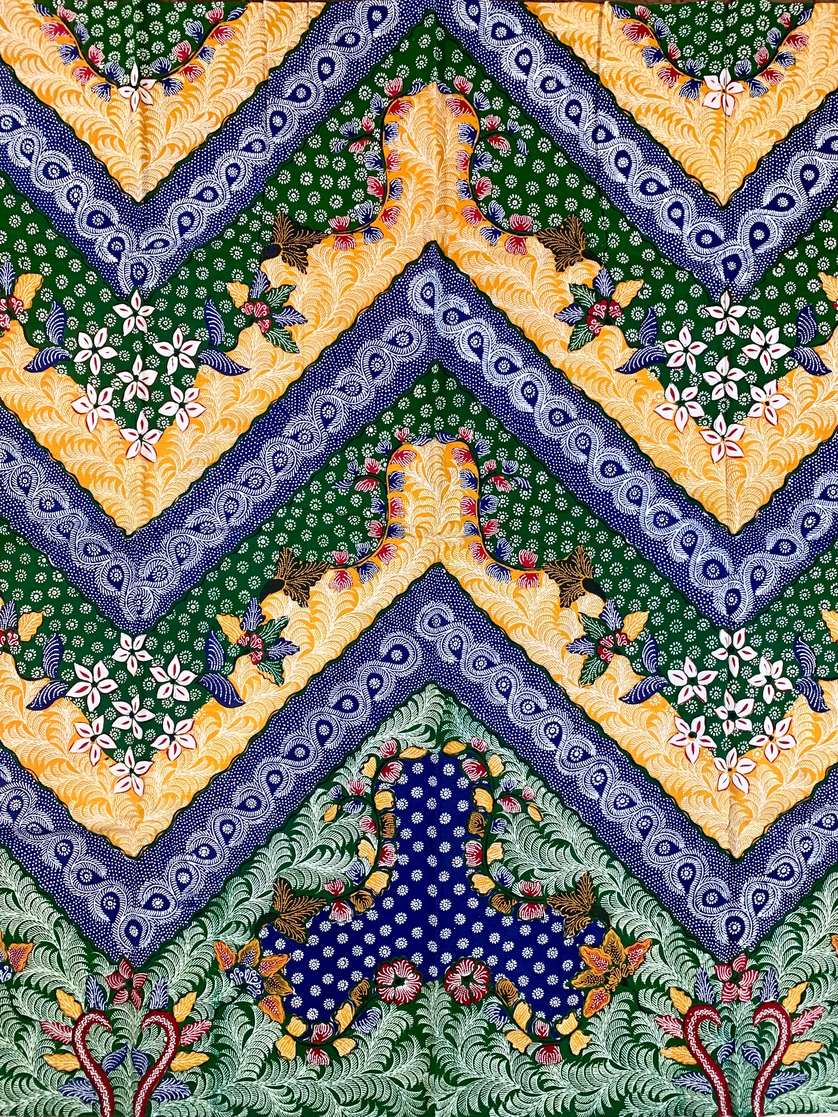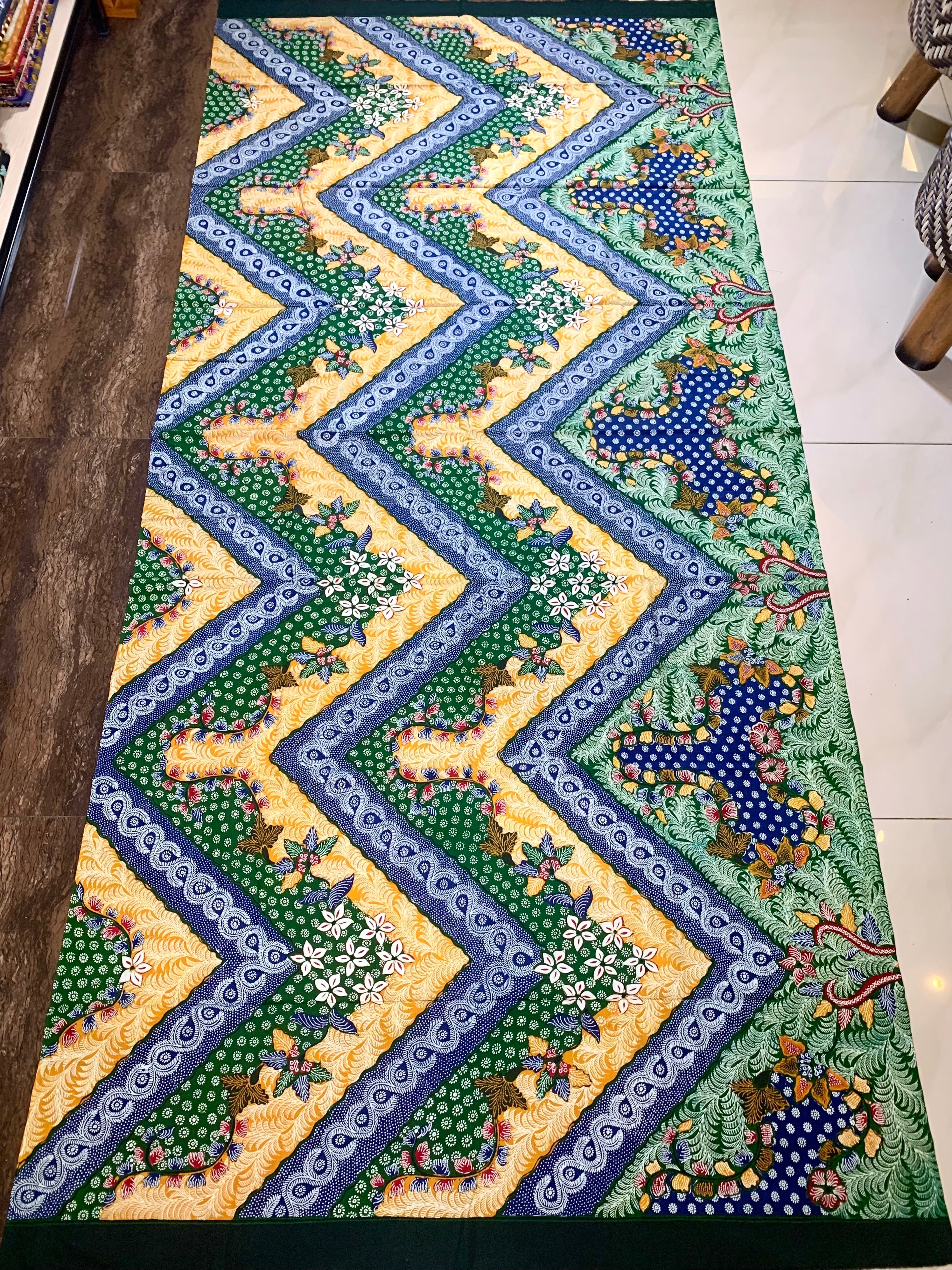 Kain batik tulis Pamekasan dengan motif lereng kembang, warna asli kain kuning, hijau, merah, biru dongker, hitam, putih, pola jarit
